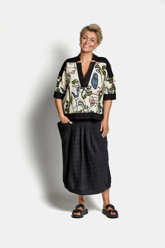 CARTOON TUNIC WITH DETAILS - PLAIN BLACK
