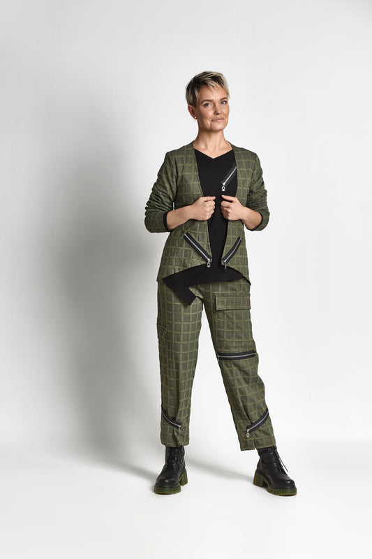 BUBBLE PANTS WITH ZIPPER DETAILS - Olive