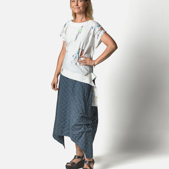 Multi-colored top featuring our iconic "walk the dog" print, designed with versatile styling in mind. The reversible construction offers two distinct looks from a single piece, maximizing wardrobe flexibility and value. The playful graphic brings personality and character while maintaining wearability across casual and relaxed occasions. A thoughtfully designed piece that combines our brand's distinctive visual language with practical functionality, perfect for those seeking creative layering options.